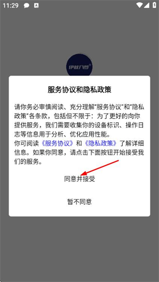 1、进入伊枕入梦后,点击同意并接受,进入登录页面。