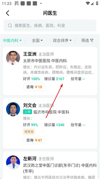 3、在医生列表中选择目标医生,进入该医生的详情页面。
