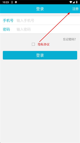 3、输入手机号、设置密码,输入验证码,勾选隐私协议,点击注册,完成账号注册。