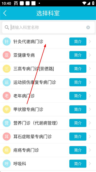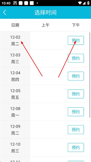 3、在科室列表中选择目标科室,进入时间选择页面。