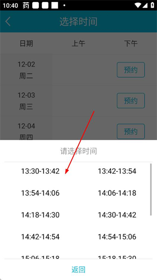 4、在时间选择页点击目标日期,展开时段选择列表。