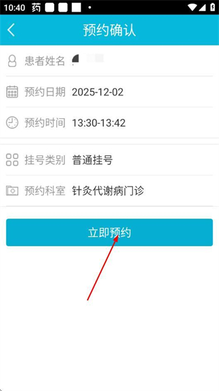 6、在预约确认页核对信息后,点击立即预约,完成网上挂号。