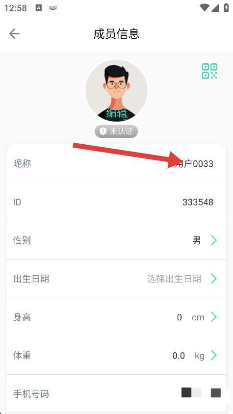 3、在信息页面,点击昵称右侧的文字区域,进行昵称修改。