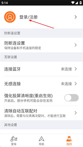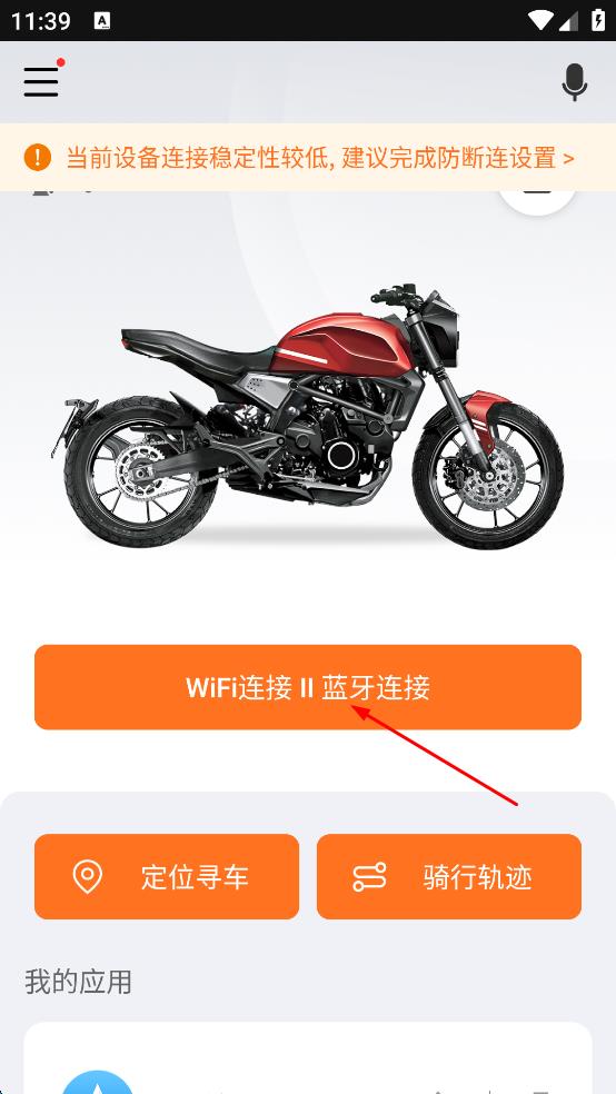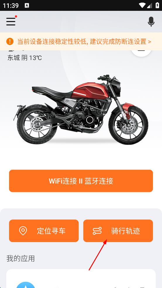 3、连接成功后,返回软件主界面,点击“骑行轨迹”选项,进入骑行轨迹页面。