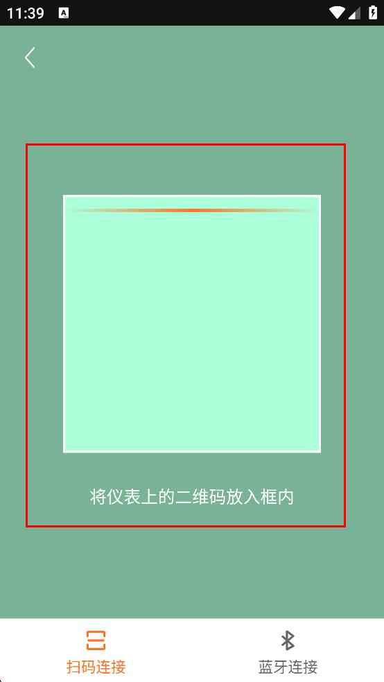 2、在扫码连接界面,将仪表上的二维码放入扫描框内,完成设备连接。