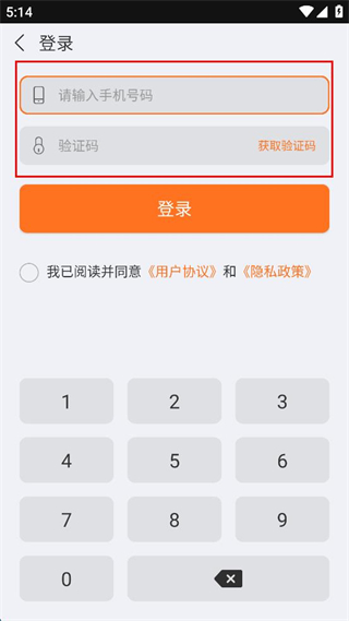 3、在登录界面填写手机号码,点击获取验证码后填写收到的验证信息。