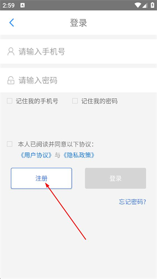 3、随后我们在登录页面,点击注册,进入注册页面。