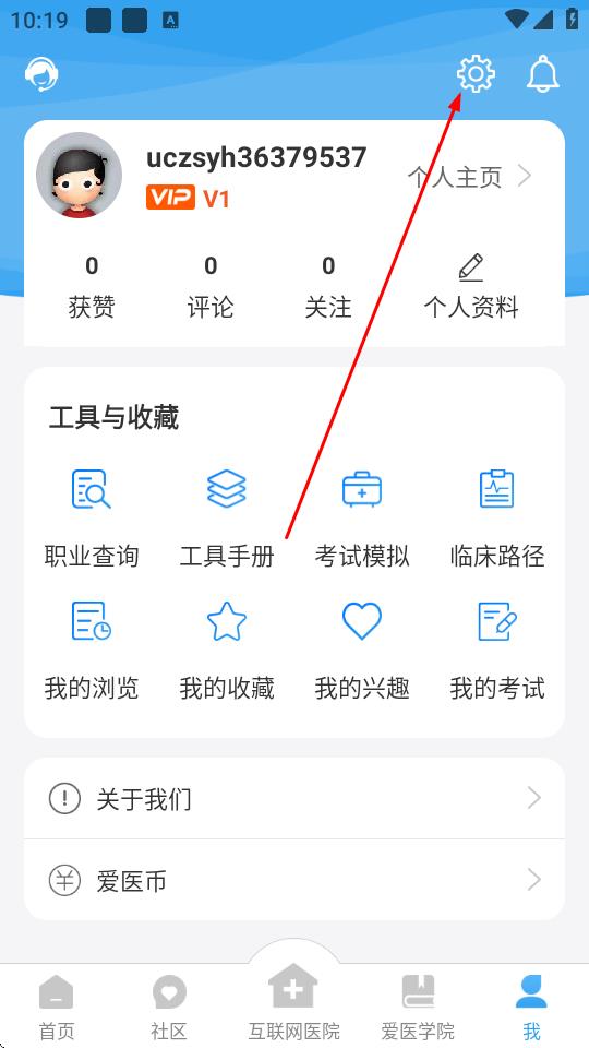 2、在个人页面中,点击右上角的齿轮状设置图标,进入设置界面。