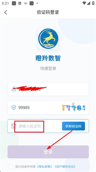 3、在验证码输入框中填写收到的验证码,点击登录完成账号的登录操作。