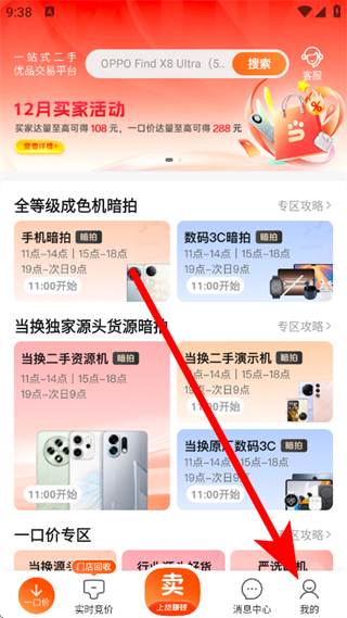 支持竞拍与一口价两种交易方式,竞拍专场每日定时开启,支持匿名出价与自动延时防截标,一口价专区按成色分级,满足个人捡漏与商家批量采购需求。