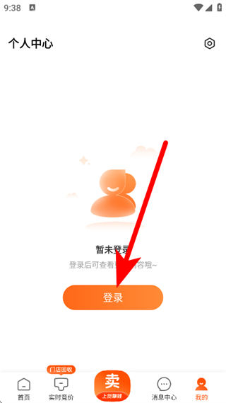 2、在个人中心页面,点击登录,进入登录注册界面。