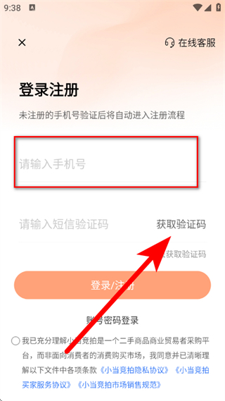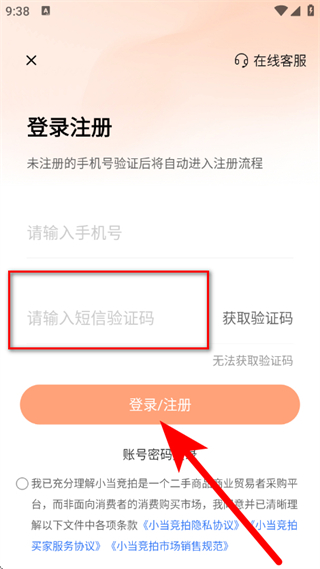 4、输入短信验证码,勾选协议后,点击登录注册,完成账号操作。