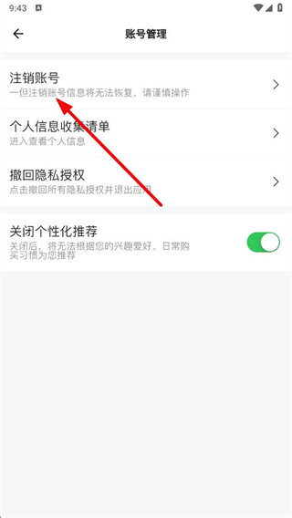 4、在账号管理页面,点击注销账号选项,进入注销账号确认页面。