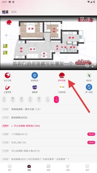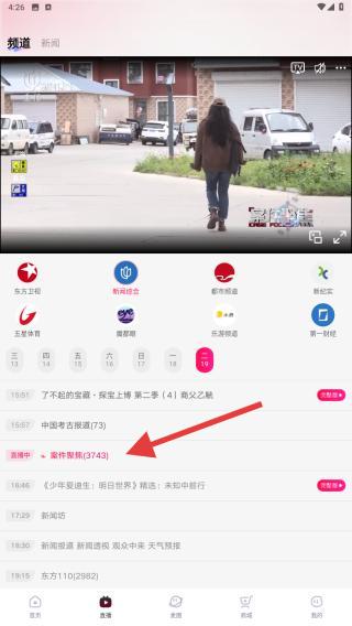 2、用户在直播页面顶部,找到并点击TV选项或电视图标,进入电视频道内进行观看电视直播。