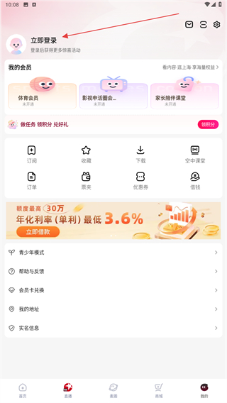 2、进入我的页面内,点击上方立即登录的按钮。