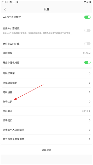 3、进入设置的按钮,点击下方账号注销的按钮。
