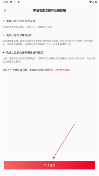 4、进入申请注销的页面内,点击下方申请注销即可。