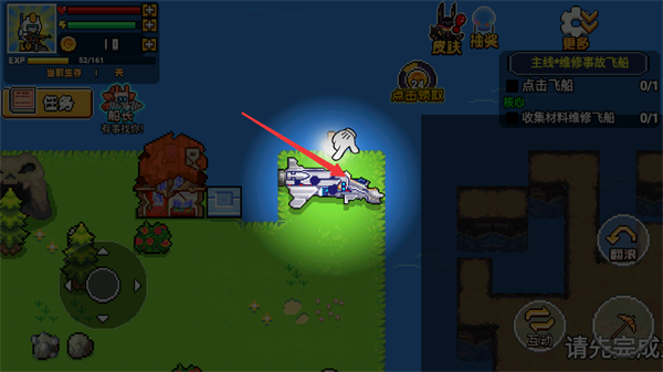 3、操控角色移动到飞船位置、点击飞船、推进维修飞船的主线任务、继续荒岛求生的游戏流程。