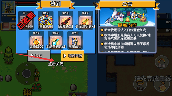 4、进入签到界面、点击领取获取奖励、随后点击关闭、继续荒岛求生的游戏进程。