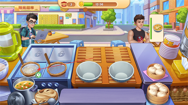 1、进入阳光超市关卡,准备制作餐食满足顾客需求。