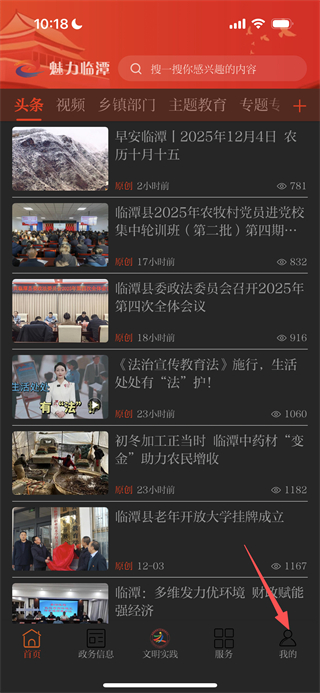1、在魅力临潭的首页,点击底部的我的选项,进入个人中心页面。