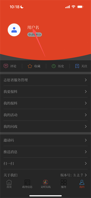 2、在个人中心页面,点击用户名区域,进入登录页面。