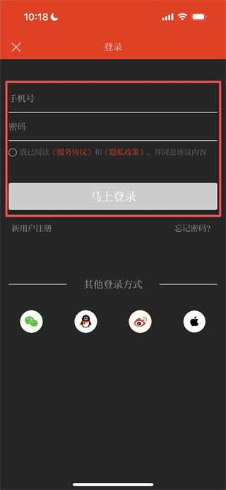 3、在登录页面,填写信息,勾选协议后点击马上登录完成登录操作。
