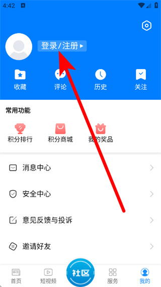 2、在个人页面,点击登录注册,进入登录界面。