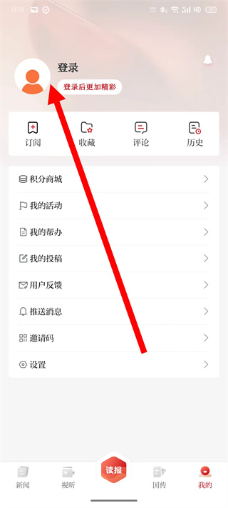1、打开彩练新闻,点击底部的我的,进入登录。