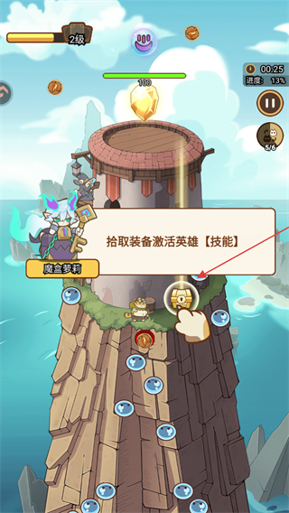 4、拾取装备激活英雄技能,提升战斗能力,持续推进关卡进度。