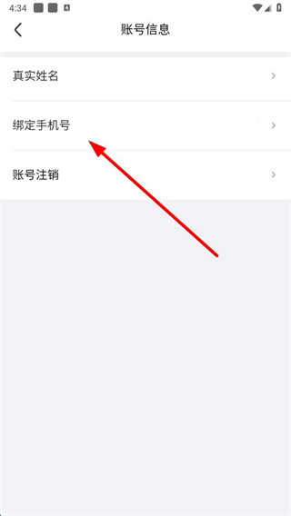 3、在账号信息页面,点击绑定手机号选项,进入绑定手机号页面。