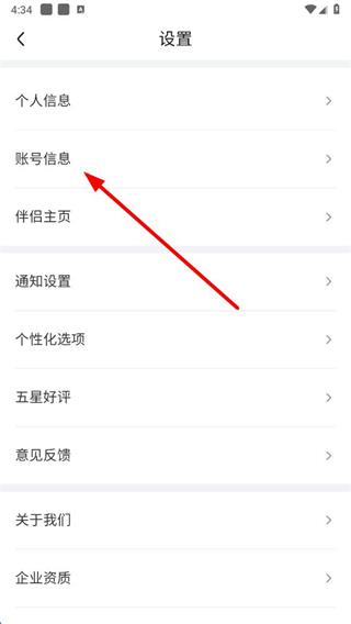2、在设置界面,点击账号信息选项,进入账号信息页面。
