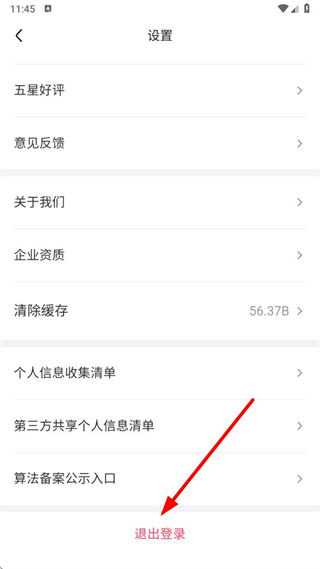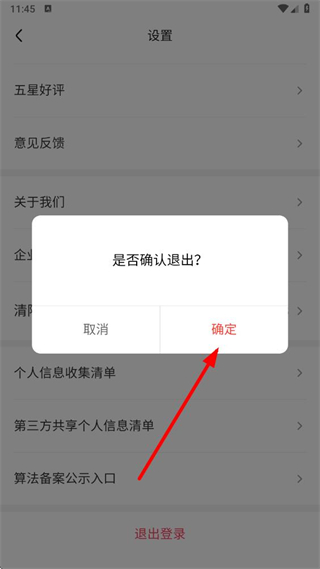 3、在设置页面底部,找到退出登录选项并点击,触发是否确认退出的提示弹窗。