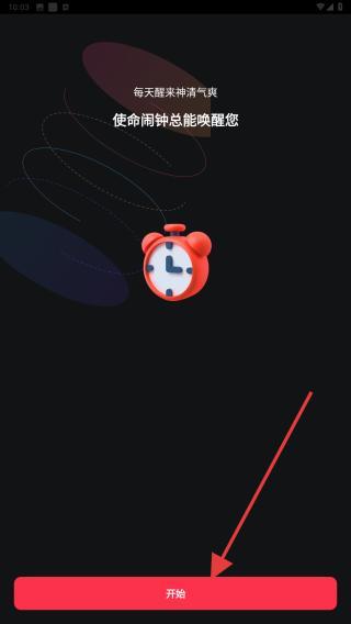 1、打开使命闹钟APP,进入时会弹出该页面,点击开始的按钮。