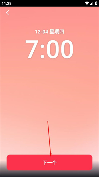 2、进入显示闹钟时间的页面,确认时间信息后继续点击下一个按钮。