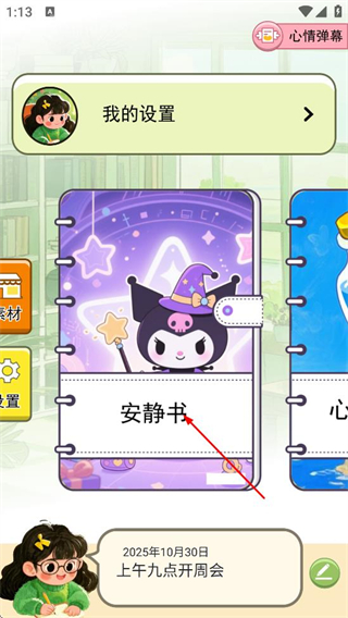 1、在主界面,点击安静书选项,进入我的安静书页面。