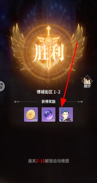 4、击败敌方单位后会显示胜利界面,可获取金币道具等奖励,这些奖励能用于提升人物的战力。