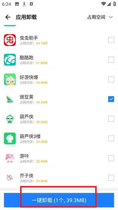 4、勾选之后,我们需要点击下方的【一键卸载】就可以直接卸载软件。