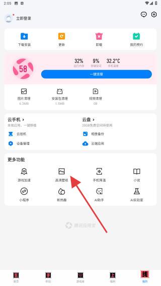 1、进入壁纸板块:在APP首页下滑,找到更多功能区域,点击高清壁纸入口。