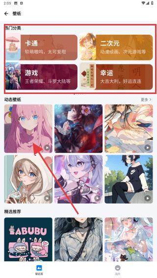 2、通过热门分类,如卡通、二次元、游戏等标签筛选风格,或在动态壁纸板块浏览推荐内容。
