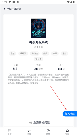 4、即可在我的书架中看到该小说,已成功将其加入书架。