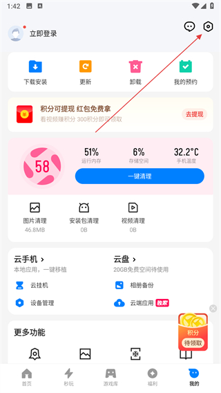 1、打开应用宝,找到设置图标并点击,进入设置界面。