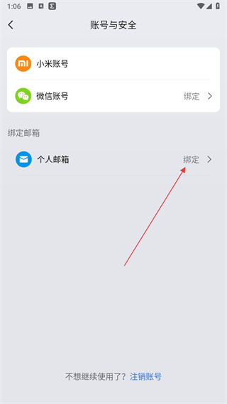4、在账号与安全页面,点击个人邮箱的绑定。