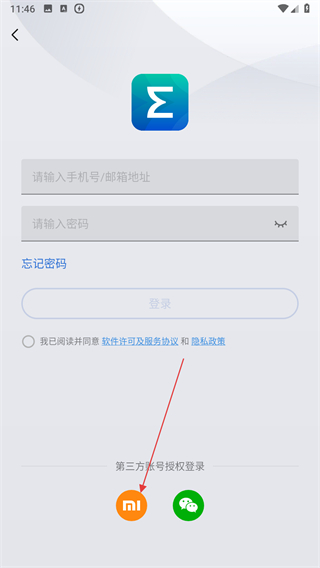 3、在登录界面底部,找到小米账号对应的图标并点击。