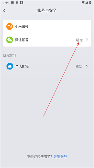 4、在账号与安全页面,点击微信账号的绑定。
