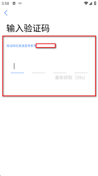 4、在输入验证码页面,将收到的验证码填入对应框内,完成登录操作。