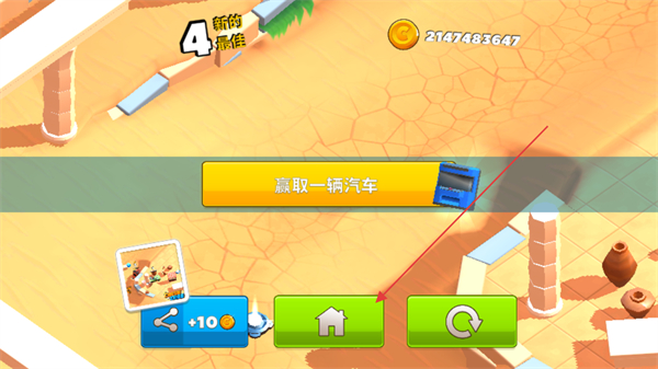 4、完成一场对局后,会记录当前获取皇冠数量的最佳成绩,点击下方小房子按钮回到游戏主页。