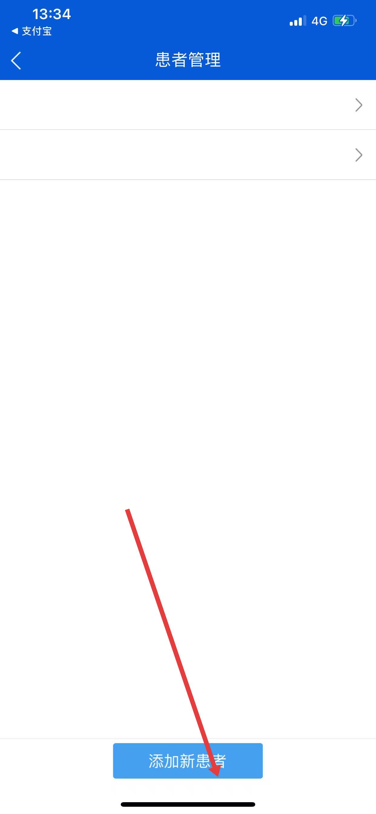2、进入患者管理页面后,点击下方的添加新患者按钮。