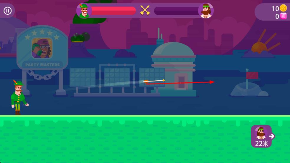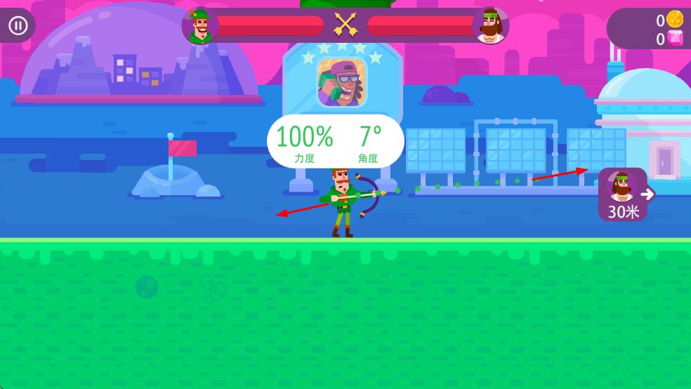 起初小编还以为这游戏要想打中敌人只能纯靠运气呢,但是后来发现在每次抛出之前,都会有力度和角度的数值显示,这样就好办了,基本上第一次攻击就是在测量,然后,后面几次就可以根据第一次的落点,判断究竟多大力度配合上多少角度才能命中呢,小编觉得还是挺有意思的。