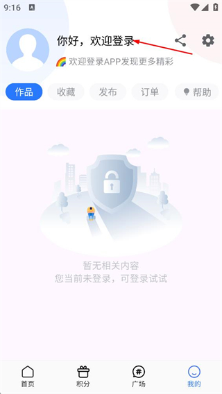2、在个人页面,点击你好,欢迎登录区域,进入登录方式选择页面。
